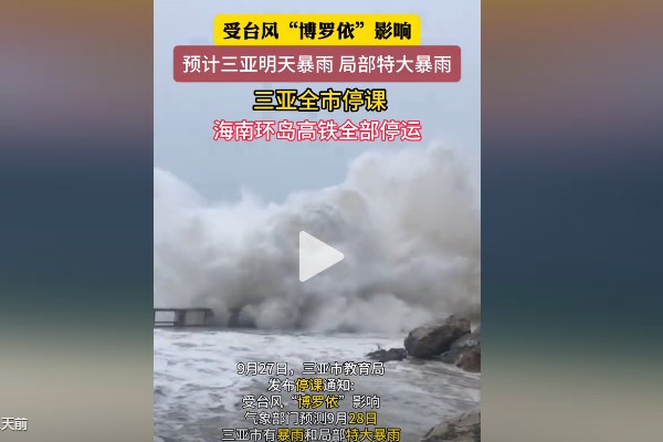 近日,三亚市因受到20号台风“博罗依”的影响,面临强风和暴雨的严峻考验。根据最新消息,三亚市于9月27日晚21时启动了防汛防风Ⅱ级应急响应,并发布了停课、停工、停运、停航的通知,全面落实“四停一关”措施,以确保市民安全。