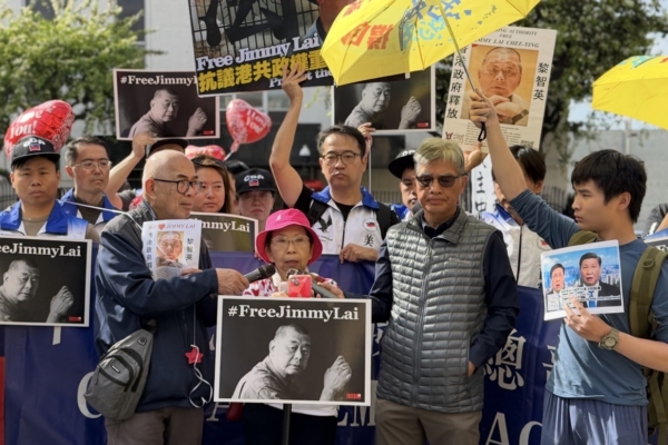 本月9日的法庭裁决,让黎智英及其《苹果日报》的其他员工也遭到不同程度的刑罚,分别被判处10年和7年的监禁。14日,在前香港立法会议员单仲偕的主持下,洛杉矶的视觉艺术家协会和香港人会馆联合组织了一场集会,数十名正义人士在中国驻洛杉矶领事馆前集结,高呼口号,抗议中共对香港政府的施压及对法律规则的公然侵犯。