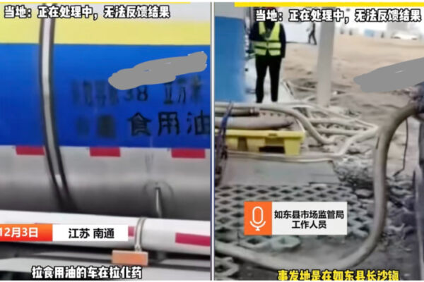 近日,中国江苏南通市再次引发食品安全的忧虑,令人震惊的是,一辆标明“食用油”的罐车竟被发现用来运输化学药物。12月3日,一位网友在如东县某工厂拍摄到这一幕,并在社交平台上发布,引发广泛关注和讨论。