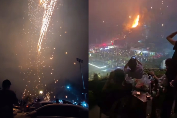 这场在“天空剧院”内进行的烟火表演分为五个章节,前半部分的烟火展示顺利进行,然而在结尾的无人机表演中,意外发生了。现场视频显示,火星如同流星雨般从空中降落,不仅落在剧院上方,还砸向人群,令观众们惊叫不已,有人高喊:“好危险!”另有人则呼喊:“着火了,快救命!”随即,现场的树木被点燃,观众们开始慌忙撤离。