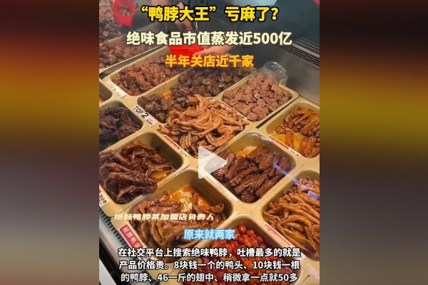 绝味门店密集布局导致单店盈利能力持续下降。一位江苏地区的加盟商表示,受到外卖竞争和消费疲软的影响,其门店每日营业额仅为3000元,全年净利润不足7万元。这一现象也反映出周黑鸭和煌上煌关闭门店的原因。
