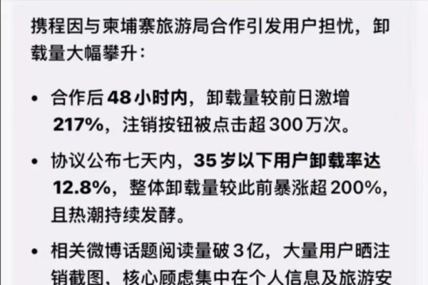 此外,携程在2025年9月与柬埔寨国家旅游局签署营销合作协定,推动柬埔寨旅游,但此举却引发了中国用户对该地区旅游安全的强烈质疑,担心携程可能泄露个人信息,导致客户遭遇网络诈骗。