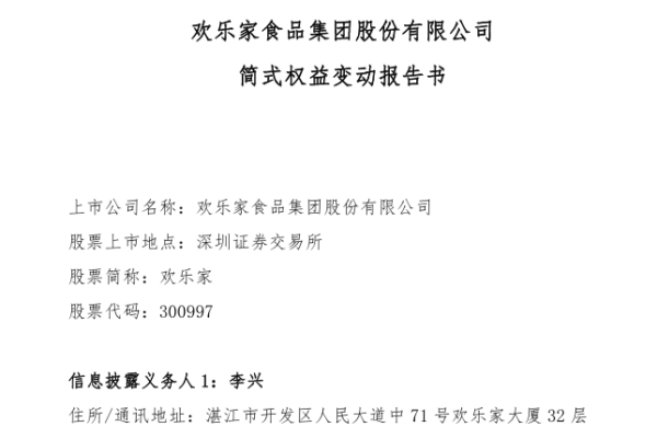 欢乐家食品集团近日宣布,董事长李兴通过询价转让的方式减持了公司股份,套现约1.89亿元。这一消息令市场广泛关注,尤其是在公司预计2025年净利润将大幅下降的背景下。